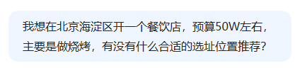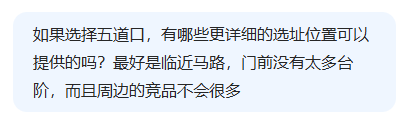 创业者注意!如何利用DeepSeek×客流易APP提升开店选址效率?发表时间:2025-02-21 15:21 上周我们分享了DeepSeek和客流易营销平台的组合拳,需要低成本精准获客的朋友应该会很感兴趣。 本周,我们再聊聊另一个话题:如何使用DeepSeek配合客流易APP,进行创业开店的选址查客流。 希望能帮助到一些想在2025年开店的创业者们。 DeepSeek+客流易APP 需求:准备在北京海淀区开餐饮店,想要一些开店选址的位置建议和客流数据。 传统选址方法是去北京海淀各大商场或街道考察,现场统计人流,有效却太费时费力,容易错过优质地段的店铺。 这时如果你会用“DeepSeek+客流易APP”这套产品组合拳,开店选址将变的不再困难! 先用DeepSeek,获取选址建议 在DeepSeek上输入我们的需求,尽量详细点,给予AI充分的信息。比如: ![]() 我们看看DeepSeek给出的解答是否合理: ![]() 从答案来看,虽然DeepSeek推荐的区域比较宽泛,但确实对海淀各场景进行了思考,列出相关优势和注意点,都是餐饮店选址中需要考虑的。 当然,这还远远不够,我们继续提问DeepSeek,进一步去获取答案: ![]() 假设我们选择五道口,并提出更多要求,比如交通好、无台阶、竞品少等,看看DeepSeek还能给出哪些更详细的位置: ![]() 进一步提问后,DeepSeek给出了五道口中推荐开店选址的区域,并分析各自特点、优势和风险,已经较为全面了。 到目前为止,DeepSeek所给出的选址位置信息已足够使用,当我们掌握这些地点后,就要开始进行第二步:使用客流易APP来获取客流数据进行二次筛选。 用客流易APP,查询区域客流数据 通过DeepSeek,我们获取了一些AI推荐的选址区域,不过这种推荐缺乏数据支撑,总是让人难以信服。 这时我们便可以在客流易APP上搜索这些推荐位置,以“五道口”区域为例,假设我们计划在五道口购物中心附近开店,就可以直接在APP上搜索该购物中心: ![]() 从客流易APP上便能得到五道口购物中心的一些客流数据,包括到访人数、进店客流趋势等,这些都是该区域客流的真实写照。 ![]() 除了统计客流数据外,客流易APP还会对数据进行分析,生成人群基础画像,包含性别占比、年龄占比、学历占比、婚姻状态等,这都是开店调研时需要的重点数据类型。 ![]() 另外对于餐饮行业,人群餐饮消费能力很重要,这些也可以从客流易APP上查看到,餐饮消费额度、餐饮单价分布等数据可以辅助创业者进行经营决策,开什么类型餐饮店、开多大等。 当然,除了提供客流数据,客流易APP上还能查到周边数据、客源数据、人口数据等,这些数据的统计和分析对创业开店选址的价值相信无需赘述。 通过客流易APP验证、筛选完DeepSeek所推荐的选址位置后,就可以挑出意向最高的地点,进行后续的开店工作啦。 是不是突然觉得创业开店选址好像也没有想象中那么复杂了?如果你此时还在为选址问题困扰,或想获取相关数据用于调研,就赶快去手机应用市场搜索【客流易APP】体验体验吧! 客流易APP一直重视AI功能的开发和应用,除了DeepSeek和客流易APP简单的应用组合,接下来客流易APP会深度结合AI,推出更有趣、有价值的产品功能,让我们拭目以待吧! |
